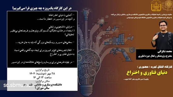 فراخوان کارگاه انتقال تجربه : دنیای فناوری و اختراع