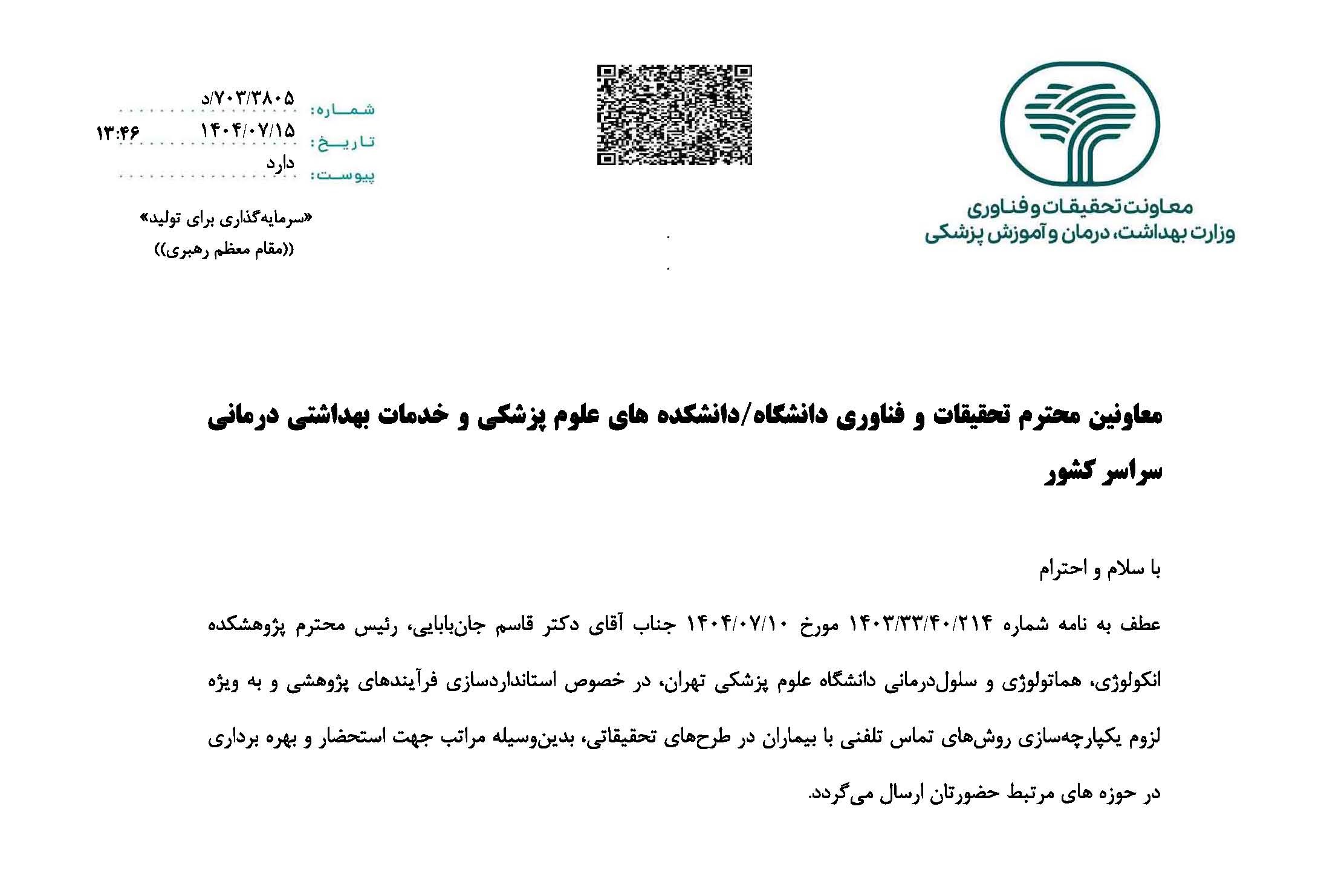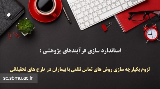 دانشگاه علوم پزشکی شهید بهشتی استاندارد سازی فرآیندهای پژوهشی : لزوم یکپارچه سازی روش های تماس تلفنی با بیماران در طرح های تحقیقاتی پروتکل تماس تلفنی در مطالعات گذشتهنگر و مطالعات کلینیکال ترایال فایل 1 فایل 2 گروه خبری : گروه های مطالب,اخبار کمیته تحقیقات دانشجویی,آرشيو,آخرین اخبار دستاوردها کد خبر : 162565 لینک کوتاه کلید واژه