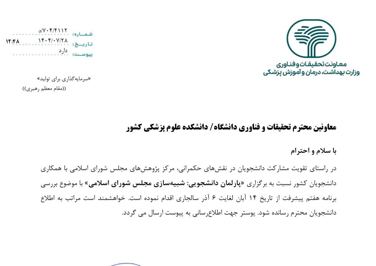 اطلاع رسانی برگزاری پارلمان دانشجویی : شبیه سازی مجلس شورای اسلامی