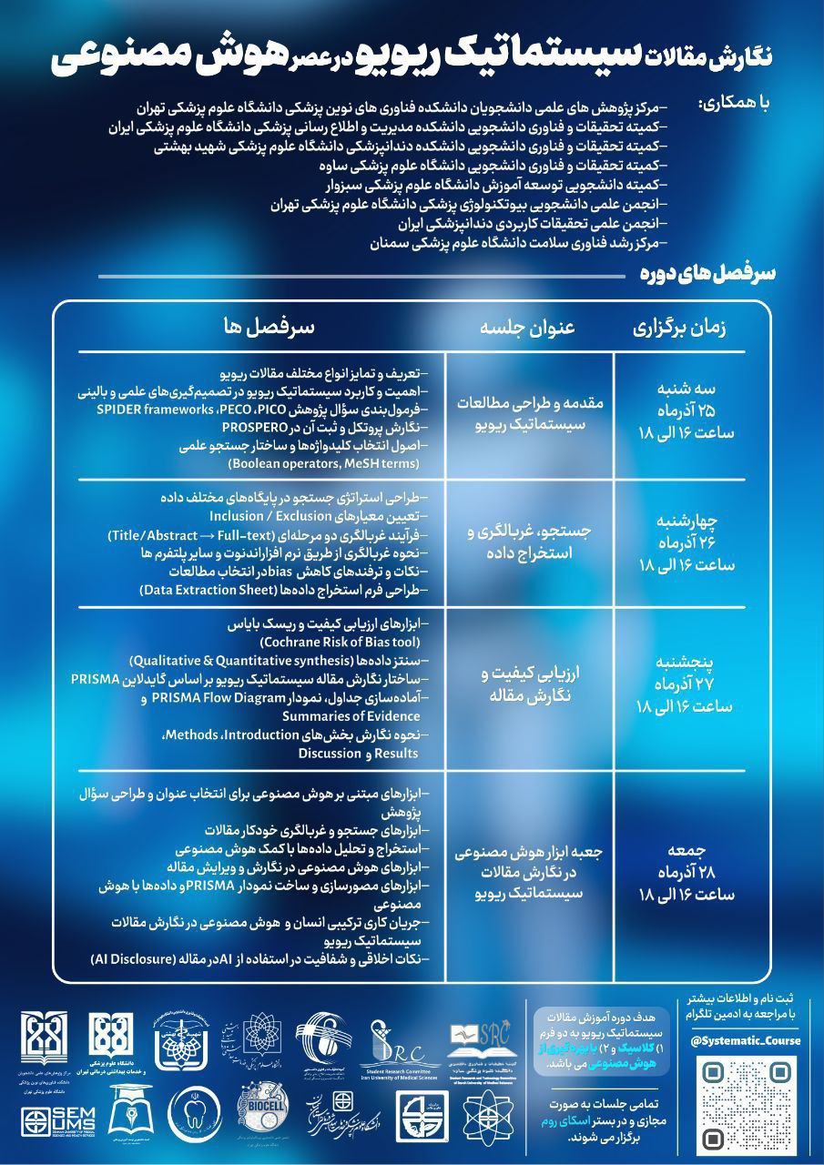 برگزاری دوره جامع نگارش مقالات مروری سیستماتیک (Systematic Review) به دو روش کلاسیک و با بهره گیری از هوش مصنوعی