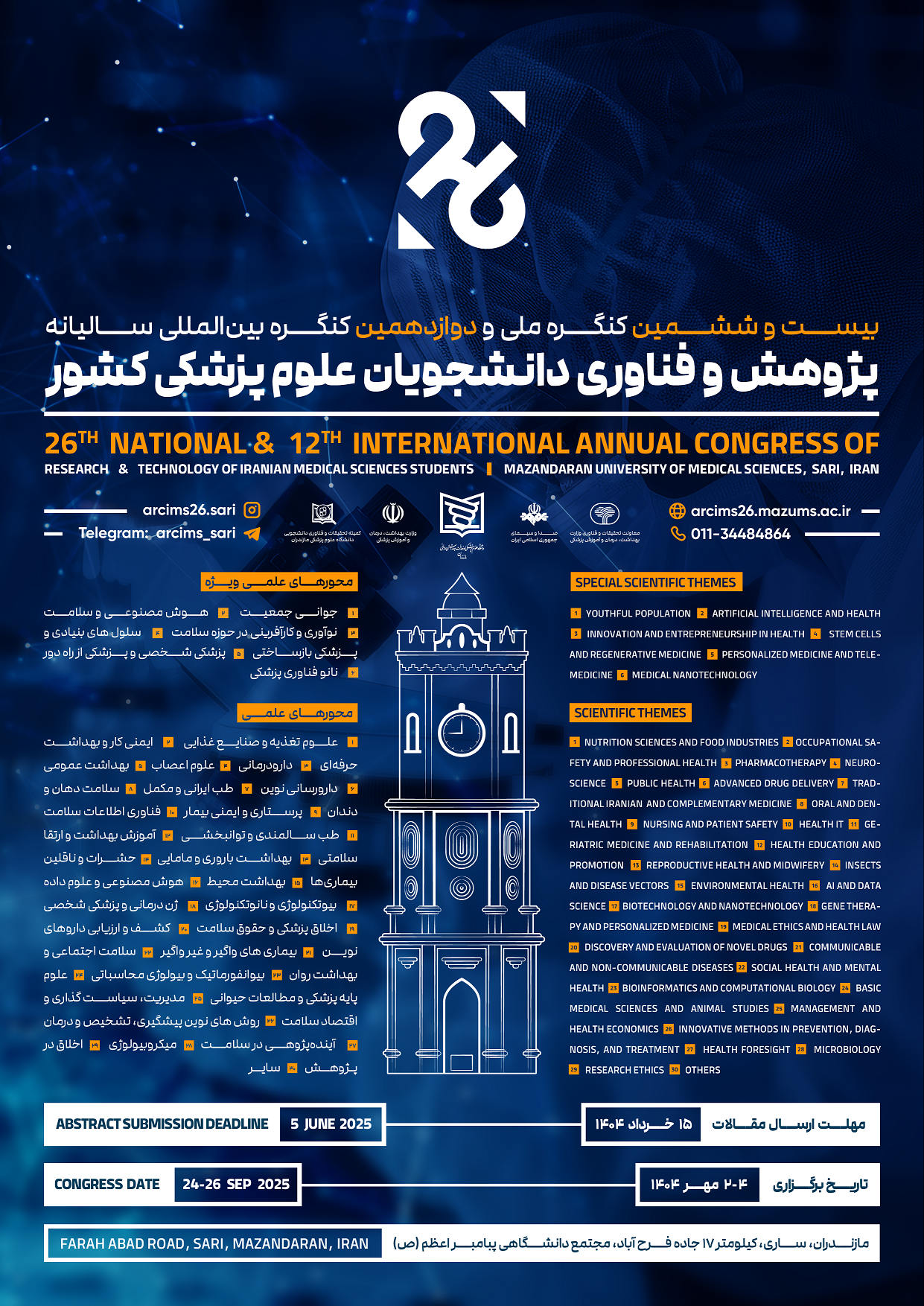 بیست و ششمین کنگره ملی و دوازدهمین کنگره بین المللی سالیانه پژوهش و فناوری دانشجویان علوم پزشکی کشور