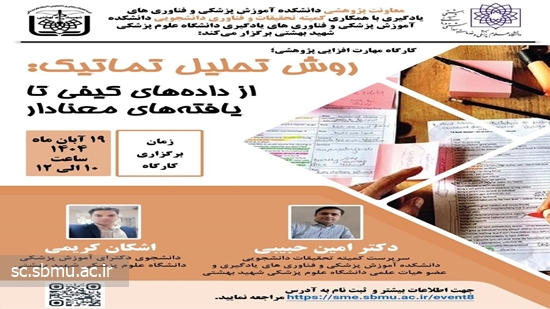 معاونت پژوهشی دانشکده آموزش پزشکی و فناوری های یادگیری با همکاری کمیته تحقیقات و فناوری دانشجویی دانشکده آموزش پزشکی و فناوری های یادگیری برگزار می کند :