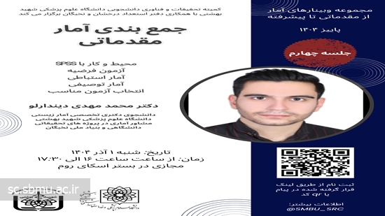 ����‍���� با تدریس دکتر محمدمهدی دین‌دارلو دانشجوی دکتری آمار زیستی دانشگاه علوم پزشکی شهید بهشتی