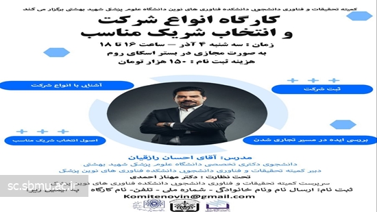 کمیته تحقیقات و فناوری دانشجویی دانشکده فناوری های نوین دانشگاه علوم پزشکی شهید بهشتی برگزار میکند.