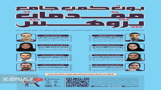دفتر یوسرن دانشگاه علوم پزشکی یزد با همکاری کمیته های تحقیقات و فناوری دانشجویی دانشگاه های علوم پزشکی یزد، شهید بهشتی، و ایران برگزار می کند: