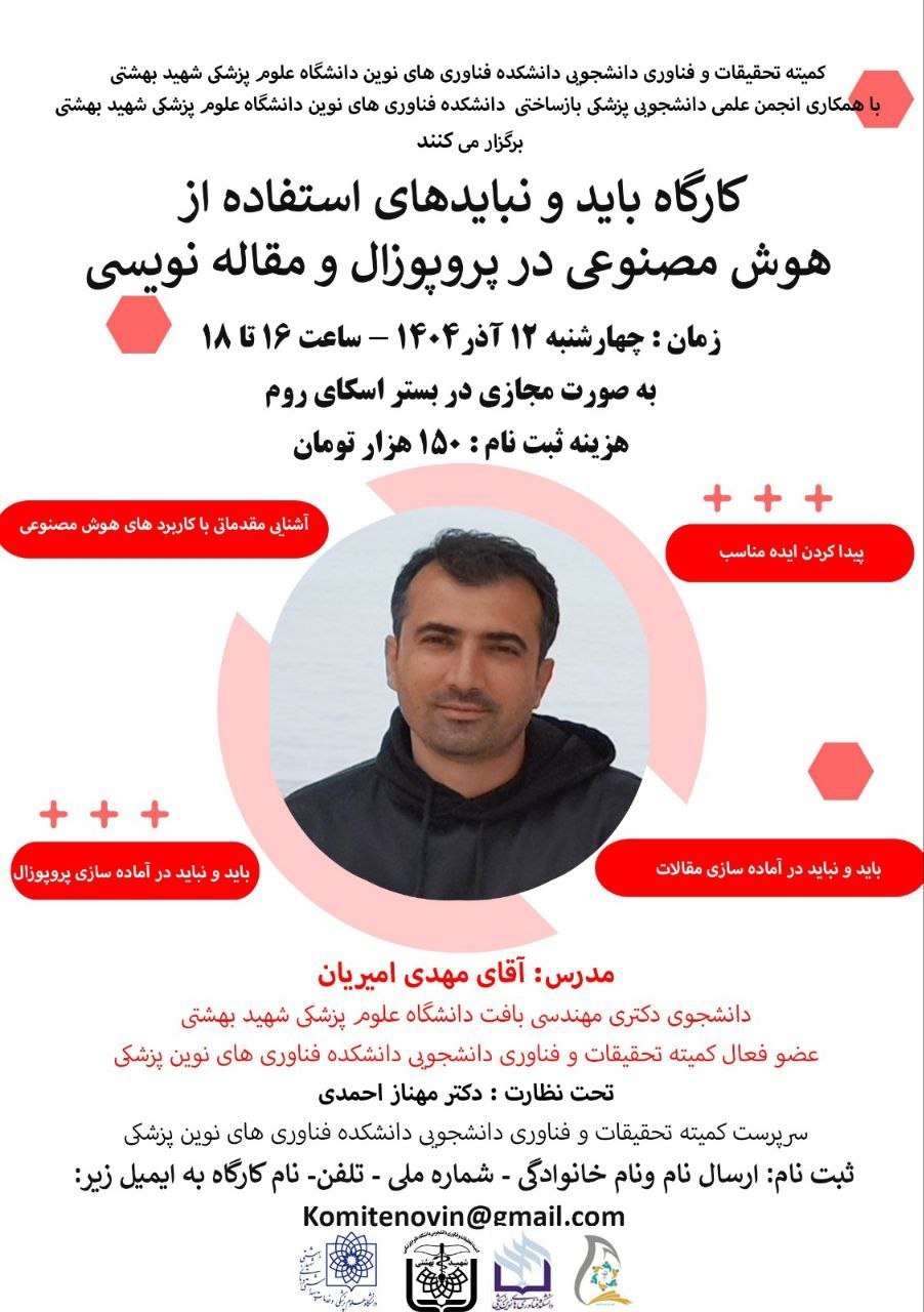 کمیته تحقیقات و فناوری دانشجویی دانشکده فناوری های نوین دانشگاه علوم پزشکی شهید بهشتی برگزار میکند.