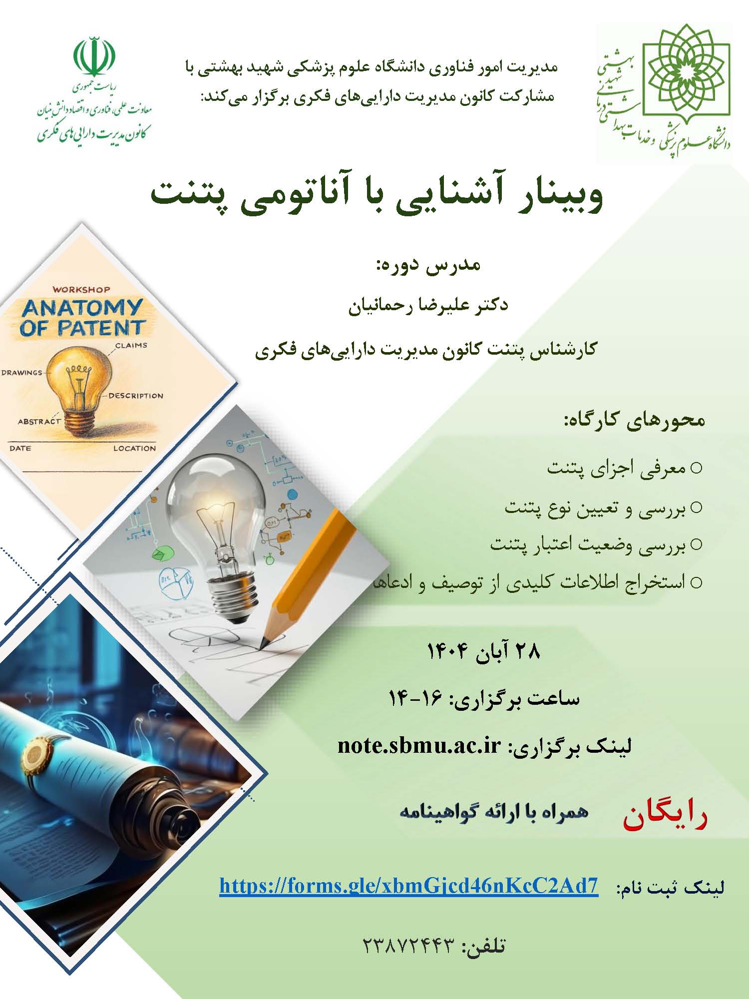 اطلاع رسانی کارگاه آشنایی با آناتومی پتنت