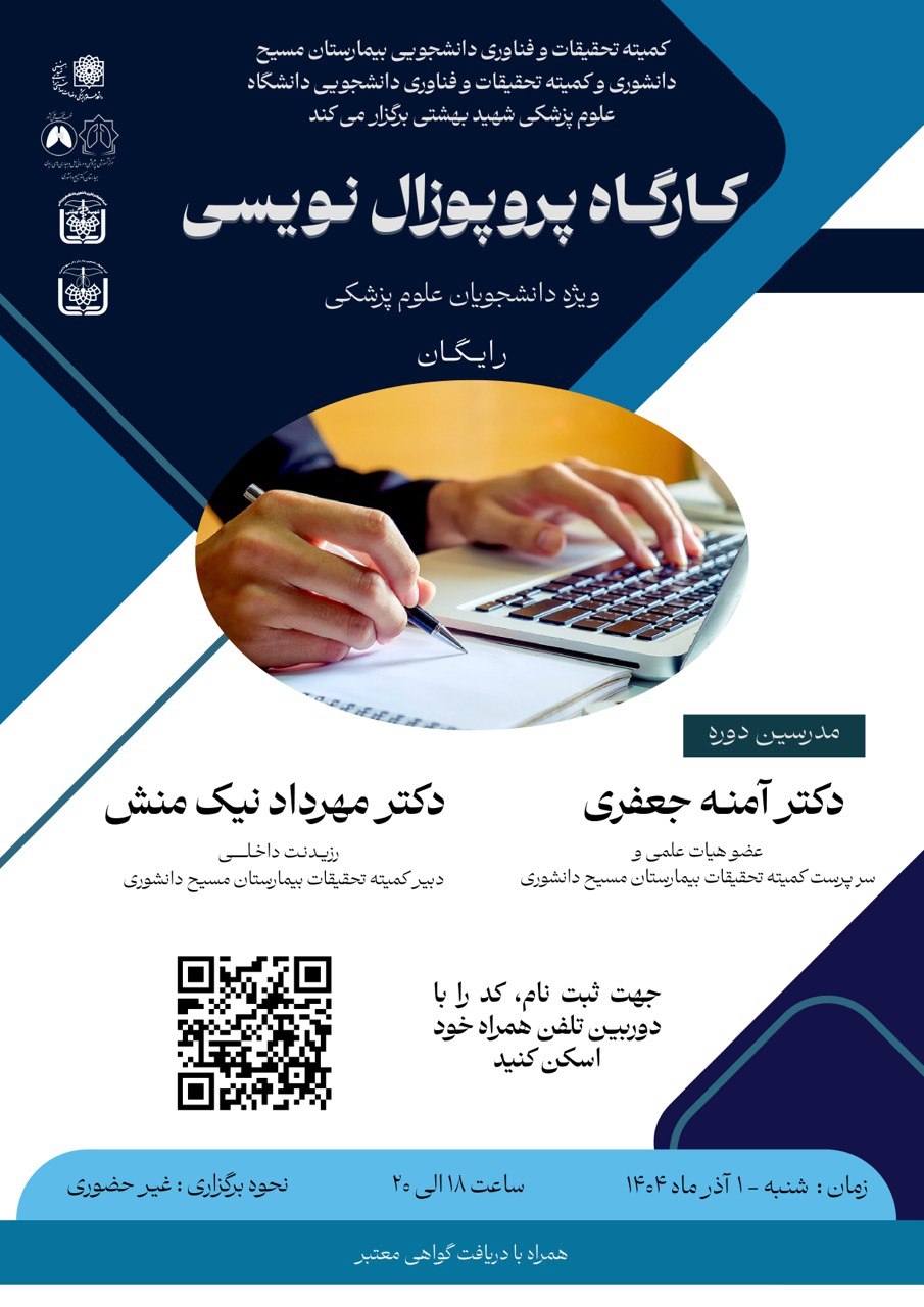 کمیته تحقیقات و فناوری دانشجویی بیمارستان مسیح دانشوری، با همکاری کمیته تحقیقات و فناوری دانشجویی دانشگاه علوم پزشکی شهید بهشتی، برگزار میکند:
