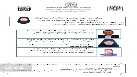 وبینار تغذیه، رژیم درمانی و اختلالات کاردیومتابولیک: