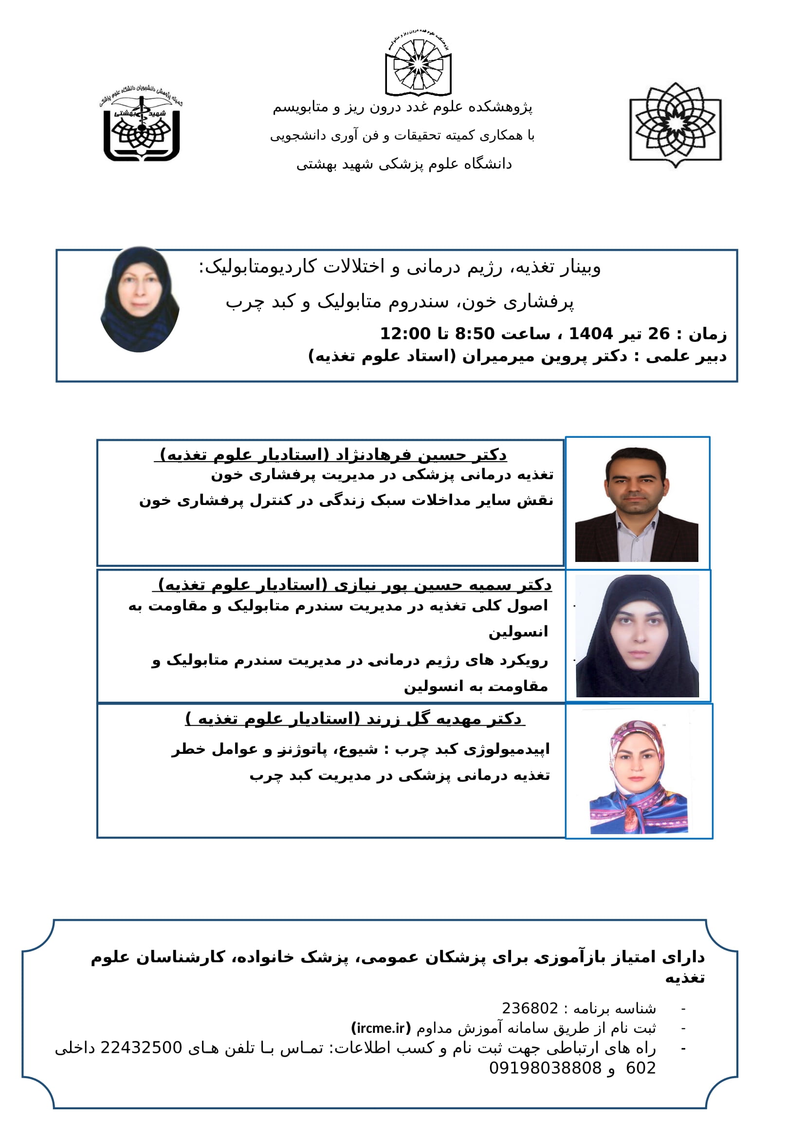 وبینار تغذیه، رژیم درمانی و اختلالات کاردیومتابولیک: پرفشاری خون، سندروم متابولیک و کبد چرب