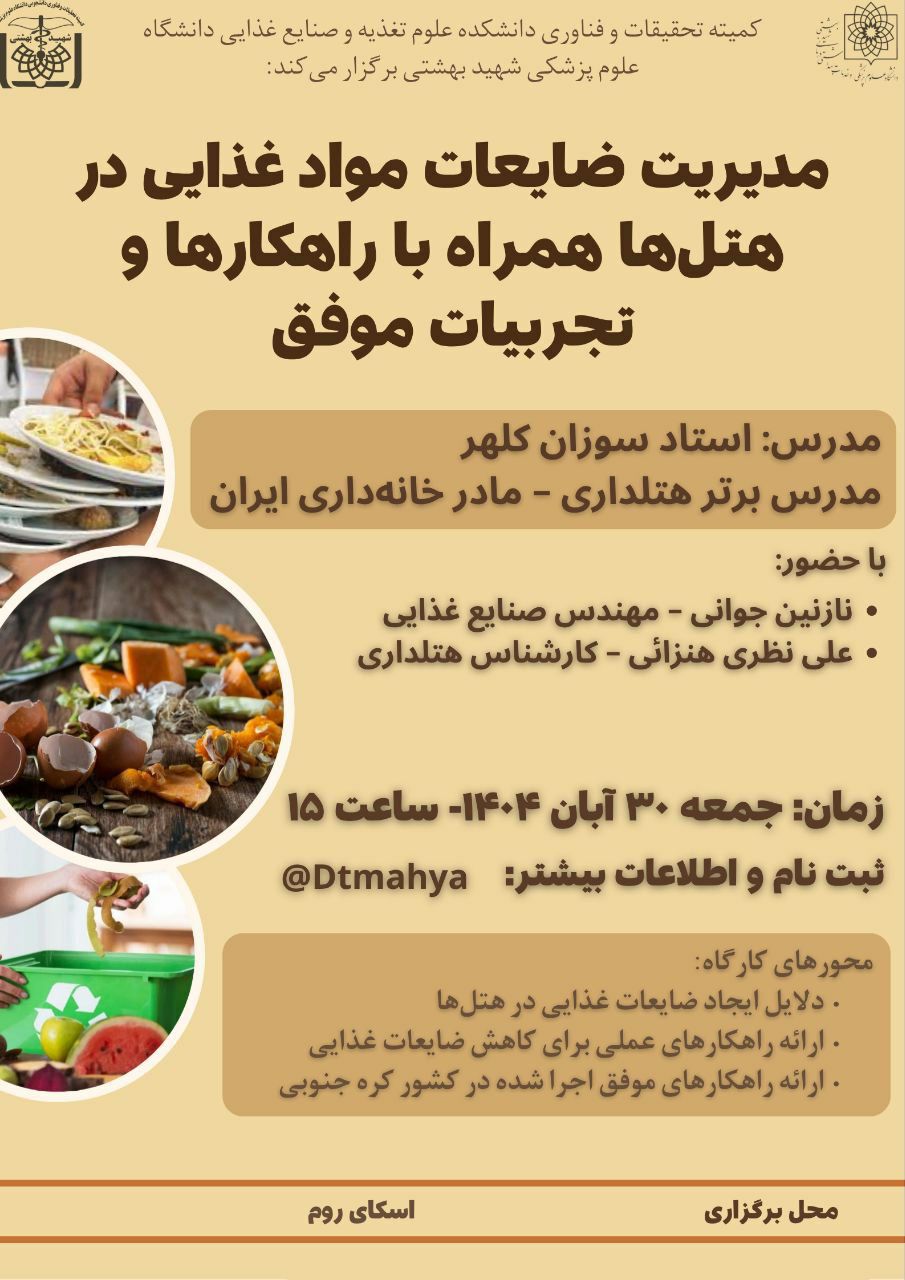 کارگاه مدیریت ضایعات مواد غذایی در هتل ها همراه با راهکارها و تجربیات موفق